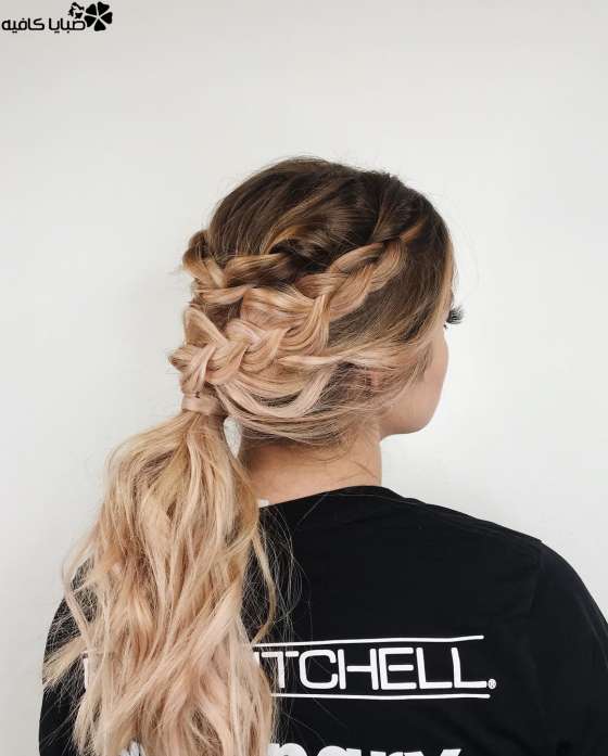 قد تبدو تسريحة الشعر هذه الجذابة والمميزة، معقدة للغاية، إلا أنها في الحقيقة عبارة عن مجموعة صغيرة من الضفائر المتشابكة وذيل حصان منسدل على الظهر. هذه التسريحة مناسبة لكل الأوقات، وهي تلائم صاحبات الشعر الطويل. وإذا كنت من محبات أكسسوارات الشعر، بإمكانك تزيين الضفائر ببعض الأكسسورات الصغيرة، مثل أكسسوارات اللؤلؤ.