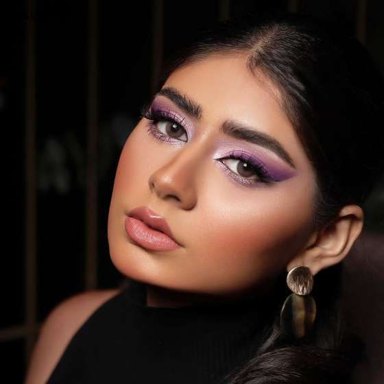 البنفسجي هو أحد أكثر الألوان الرائجة في عالم الموضة والجمال، بما فيه المكياج، لذلك هو يشكل أحد أفضل الخيارات للعيد. وبإمكانك اعتماده على طريقة خبيرة المكياج السعودية منى النعمان، بحيث يكون مرتكزاً على استخدام الظل البنفسجي بدرجاته الفاتحة والداكنة على الجفن العلوي، وتظليل الجفن السفلي بالبنفسجي الفاتح. أما الروج، فاعتمديه باللون النيود المائل الى الوردي.