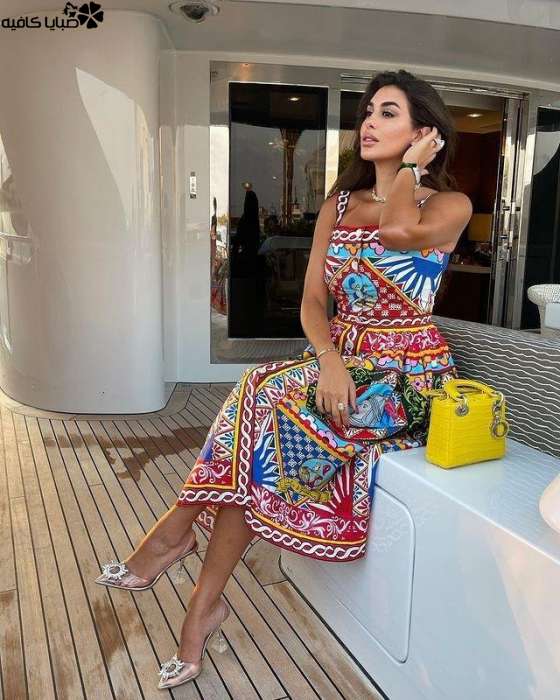 شاركت ياسمين صبري صورها مع متابعيها على انستقرام أثناء عطلتها الصيفية، اختارت فستان من دولتشي أند غابانا Dolce & Gabbana، مُفعم بالألوان والرسومات. نسّقته مع حذاء من Amina Muaddi وحقيبة يد باللون الأصفر من ديور Dior.