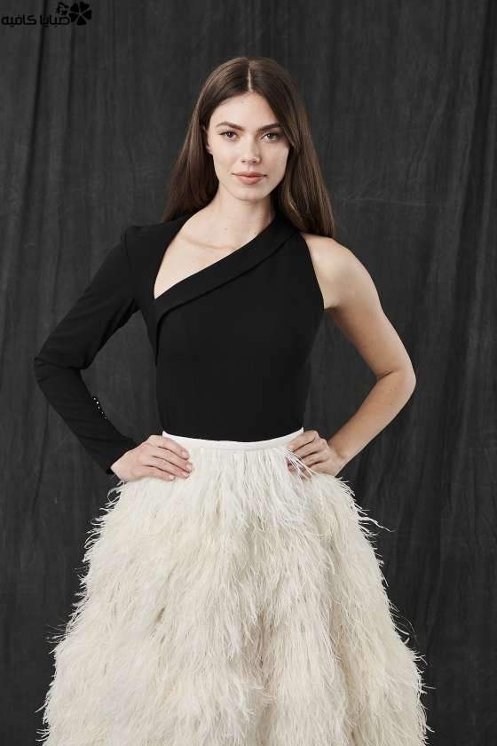 - يمكنك اعتماد هذا الفستان الأسود الناعم من تصميم ريم عكرا، الذي سيعمل على إضفاء الجاذبية ولمسات من الأنوثة على إطلالتك في ليلة الزفاف، حيث يتميز بقصته المنفوشة المزينة بأقمشة التول والذي يتناغم على نحو مذهل مع الحزام الأسود المثبت على الخصر.